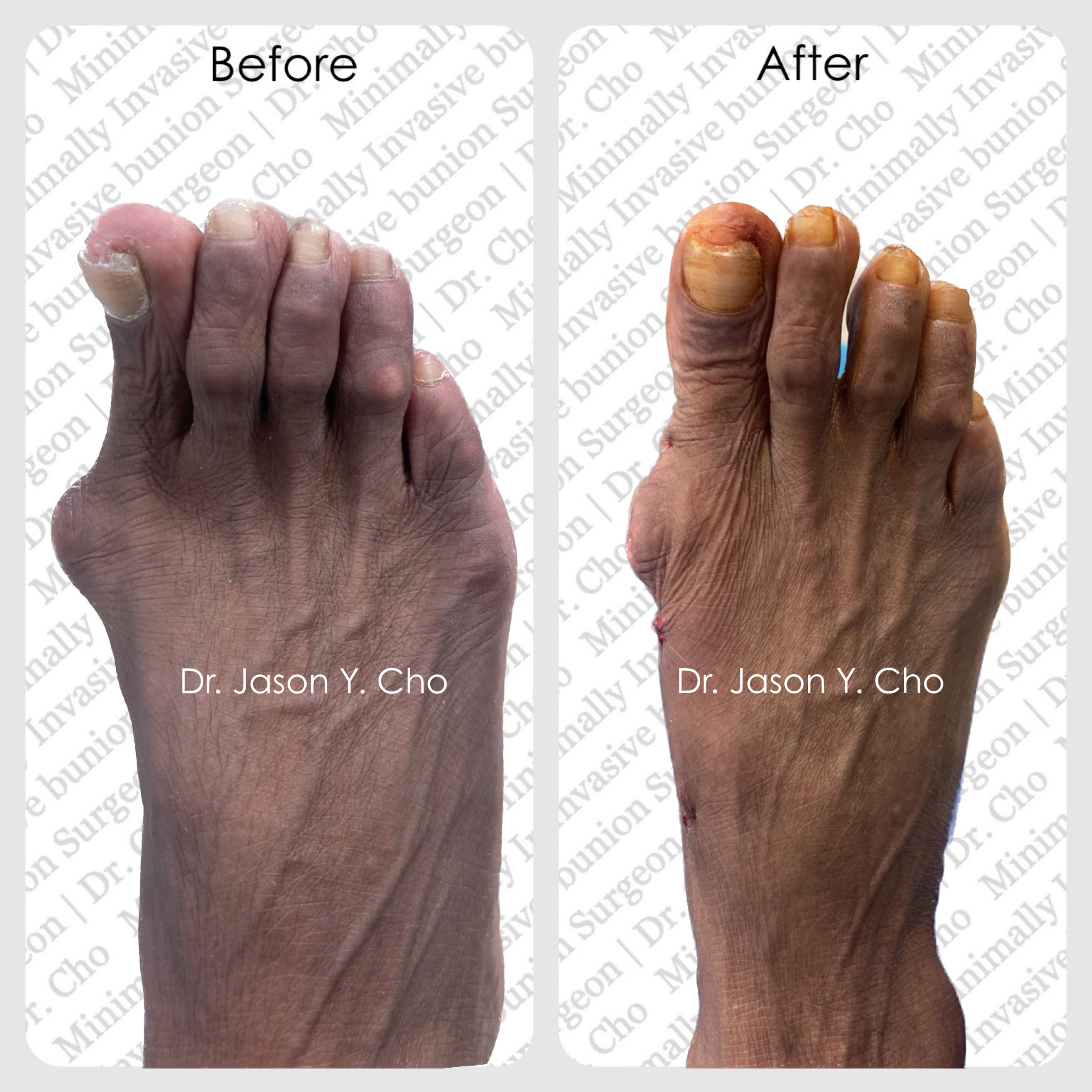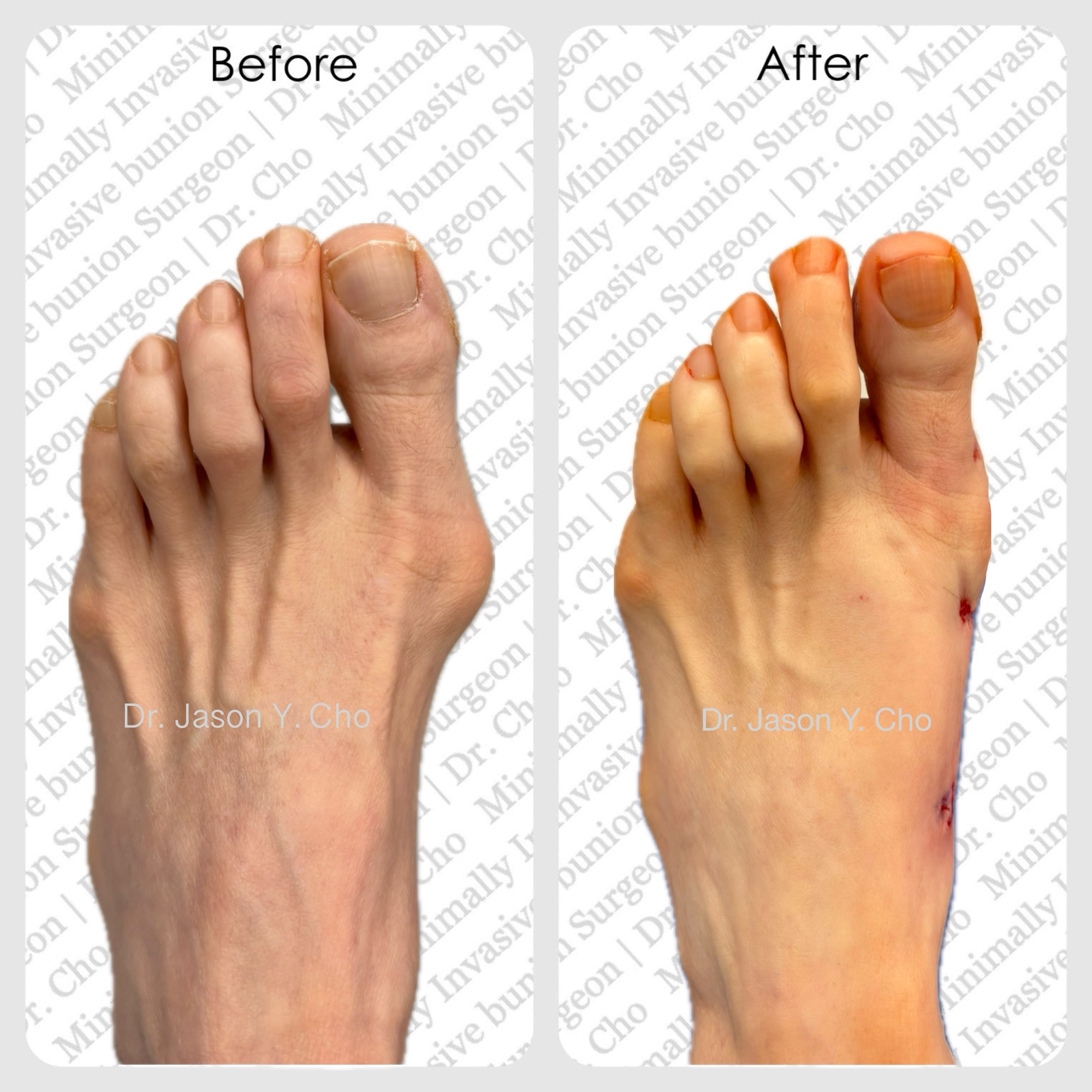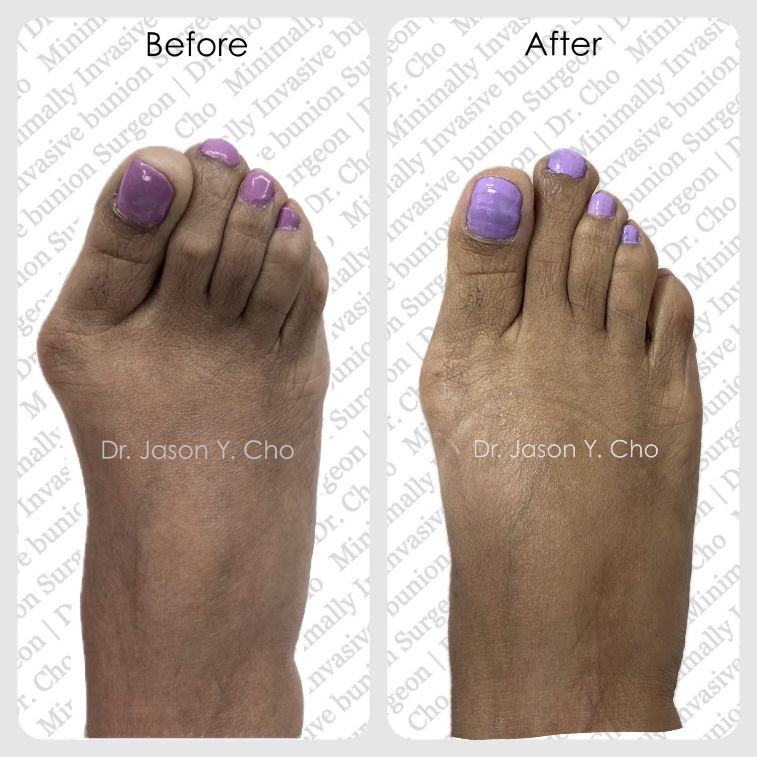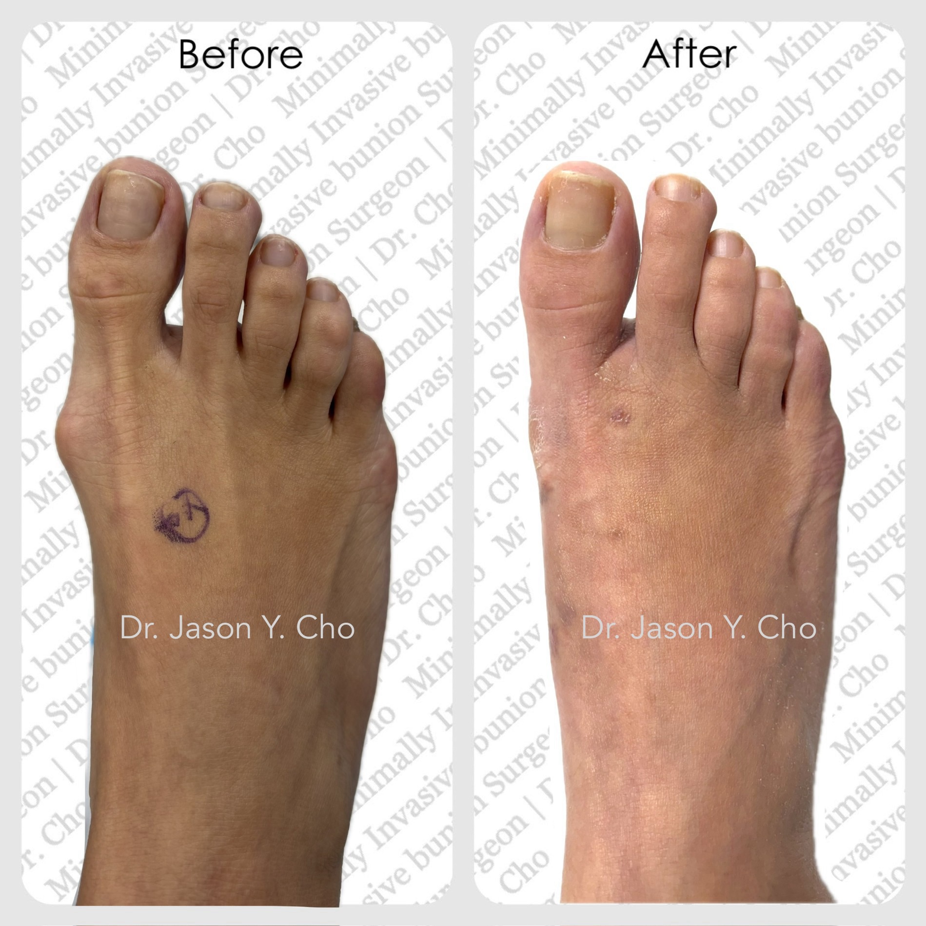 While numerous bunion procedures are available in the market, not all yield the optimal results. Dr. Cho excels in the latest minimally invasive bunion surgery, recognized for its consistent and robust outcomes, with minimal to no scarring being a standard feature.